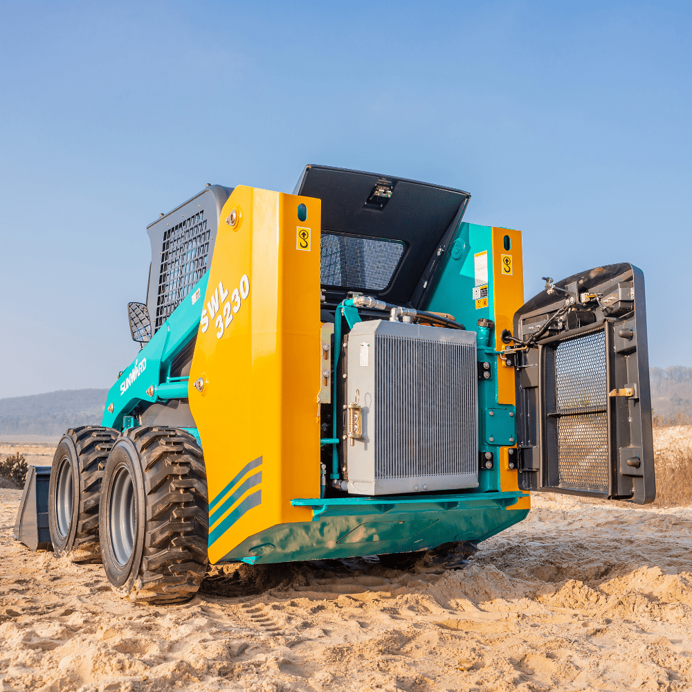 Daily maintenance is very easy since service checkpoints and cooling system components are accessible at ground level from the rear door. When it comes to service, major components are also easily and quickly accessible by tilting the ROPS/FOPS cab.